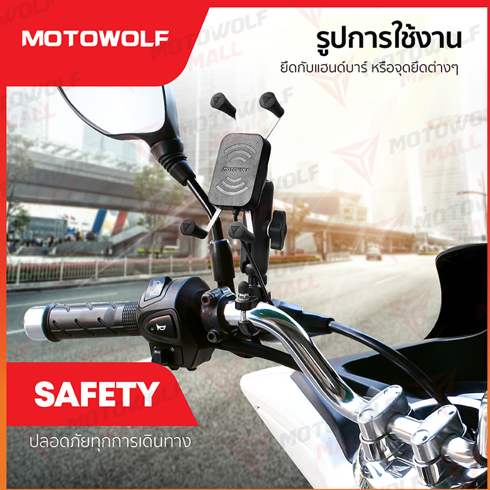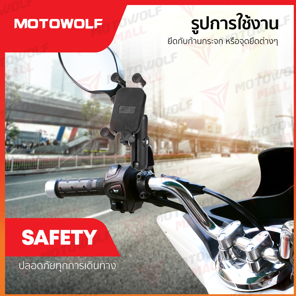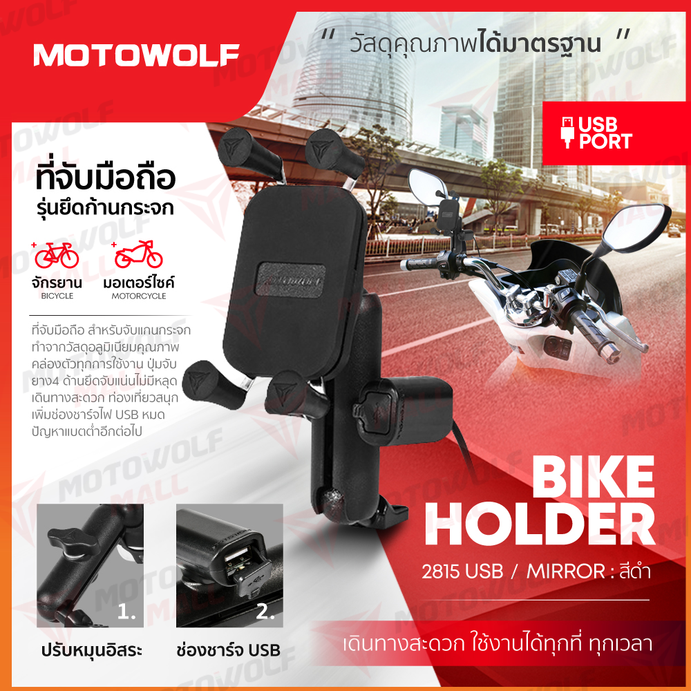 🏍 MOTOWOLF ที่จับมือถือมอเตอร์ไซค์ รุ่น 2815 🏍
