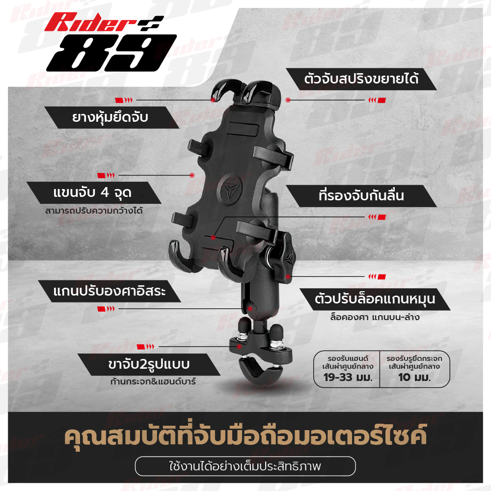 ✅ รองรับ : มือถือ 5 – 6.9 นิ้ว (รุ่นจับแฮนด์ จับกับบาร์ได้ถึง 19-33mm )
